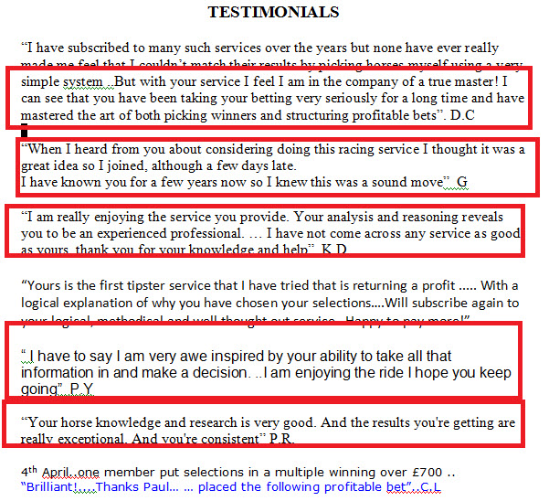 Don't believe Paul's words see what clients of Paul say on his skill and knowledge in the world of betting.